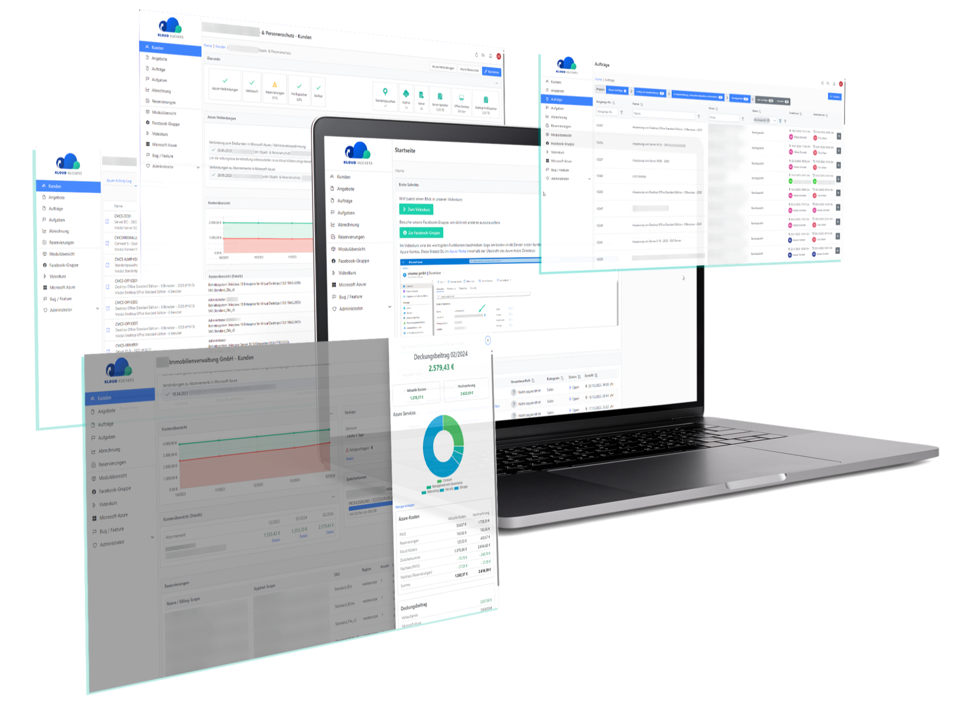 Mit kloud klickers wird die Bereitstellung von IT-Infrastruktur auf Basis von Microsoft Azure zum Kinderspiel. Ohne eigene Azure-Experten anstellen zu müssen, bietet Dir dieses Portal eine vollständige Lösung – von Angebotserstellung, über Installation und Betrieb, bis hin zur nahtlosen Integration der Abrechnungsdaten in Dein ERP-System. Starte und erweitere Dein Cloud-Geschäft mühelos mit kloud klickers.